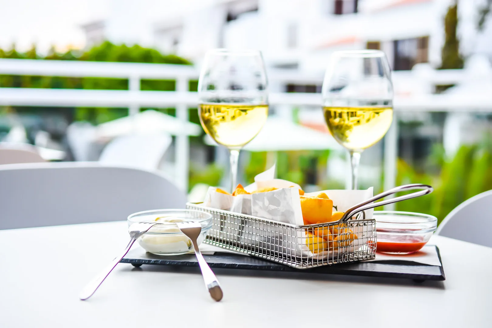 The Nelva Bar Restaurant, with an interior room and a magnificent terrace surrounded by gardens and the pool, where you can enjoy Mediterranean tapas with a good glass of wine or have a soft drink.